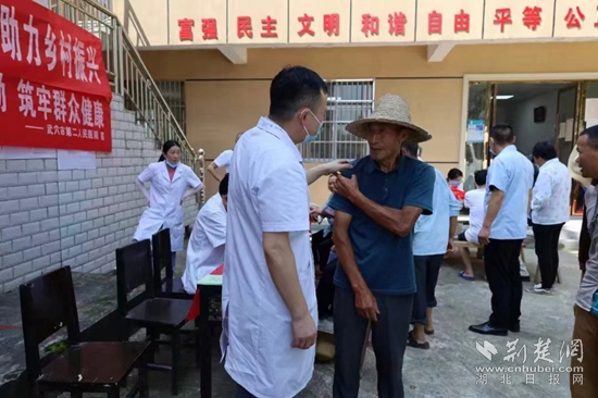 康復(fù)科醫(yī)務(wù)人員在梅川鎮(zhèn)劉昌村開展義診活動。通訊員 供圖