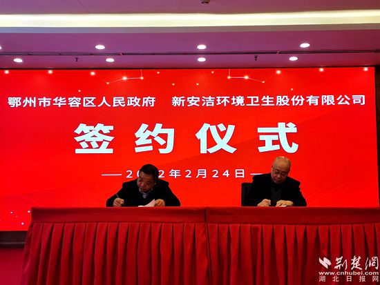 華容區(qū)政府與新安潔環(huán)境衛(wèi)生股份有限公司簽約現(xiàn)場(資料圖)。通訊員 供圖