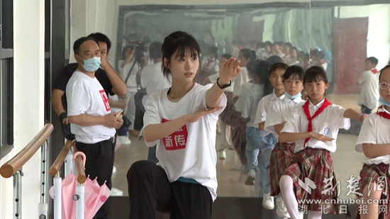 同時,武漢體育學院新聞傳播學院暑期社會實踐隊在浠水縣開展了“探尋體育初心·助力鄉(xiāng)村振興” 為主題的“三下鄉(xiāng)”社會實踐活動。在縣實驗小學內(nèi),曾榮獲全國青運會武術(shù)套路比賽冠軍的武體學子連志蘋帶領(lǐng)學生練習武術(shù),讓孩子們近距離感受體育的魅力和運動的快樂。