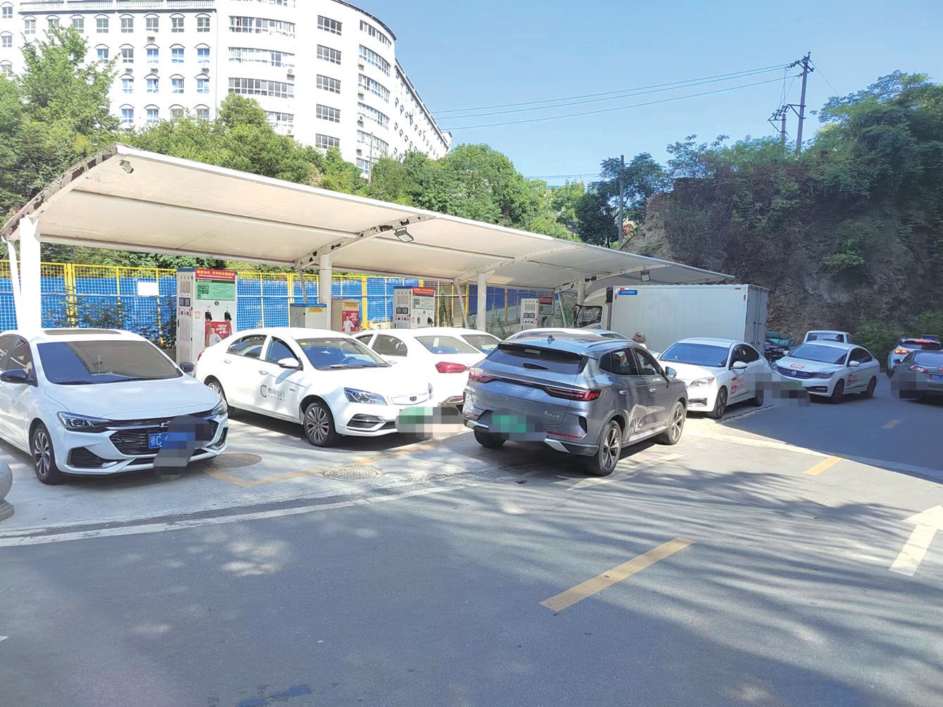 很多車輛充電,一停就是一夜