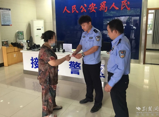 民警將被騙錢款退還給受害店主。通訊員 供圖