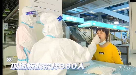 應(yīng)急演練活動(dòng)模擬萬噸冷鏈倉庫工作人員在例行風(fēng)險(xiǎn)職業(yè)人員核酸檢測(cè)中檢測(cè)出核酸陽性。接到區(qū)指揮部指令后,各專班迅速響應(yīng)應(yīng)急處置機(jī)制,在市場(chǎng)內(nèi)開展封控管理、環(huán)境消殺、人員流調(diào)、核酸檢測(cè)、隔離救治和涉疫商品處置等應(yīng)急工作。