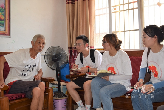 實(shí)踐團(tuán)隊(duì)在花果村采訪老黨員。 通訊員 供圖