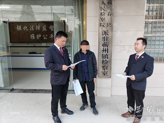 張國銀(左)向犯罪嫌疑人張某公開宣告送達《不起訴決定書》。通訊員 供圖