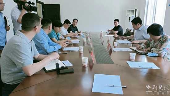 黃岡市委組織部、市商務(wù)局領(lǐng)導(dǎo)與羅田縣委書記及相關(guān)部門負(fù)責(zé)人共同商量對(duì)策,解決企業(yè)面臨的“違約”難題。通訊員供圖