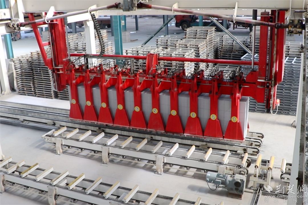 在鄂州市宏宇新型建筑材料總廠,王東兵向記者介紹了回鄉(xiāng)投資創(chuàng)辦建材廠的李總。李總準(zhǔn)備逐步完善廠區(qū)建設(shè),打造公園式綠色工廠,道路刷黑工程即將開(kāi)工。廠房?jī)?nèi),一排排機(jī)器有序運(yùn)轉(zhuǎn),工人正在作業(yè)。