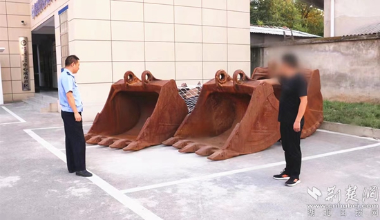 8月17日,辦案民警奔赴四川達(dá)州將犯罪嫌疑人田某抓獲歸案,并將被盜的4個(gè)完整挖斗和銷贓切割的6個(gè)挖斗帶回沙窩派出所扣押。