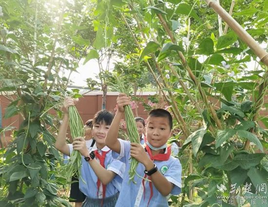 頂著炎炎烈日,聞著泥土的芬芳。鄂州市葛店實(shí)驗(yàn)四年級(jí)學(xué)生在老師、家長(zhǎng)的帶領(lǐng)下走出“空調(diào)房”,到田間地頭開(kāi)展蔬果采摘活動(dòng)。只見(jiàn)孩子們伸起胳膊,踮起腳,仰著臉,小心翼翼地從藤蔓上摘下茄子、辣椒、西紅柿、豆角、大蔥、黃瓜等新鮮蔬果,不一會(huì)兒,手中的盆、桶就裝得滿滿當(dāng)當(dāng),大家驚喜地歡呼著,個(gè)個(gè)像凱旋的戰(zhàn)士。