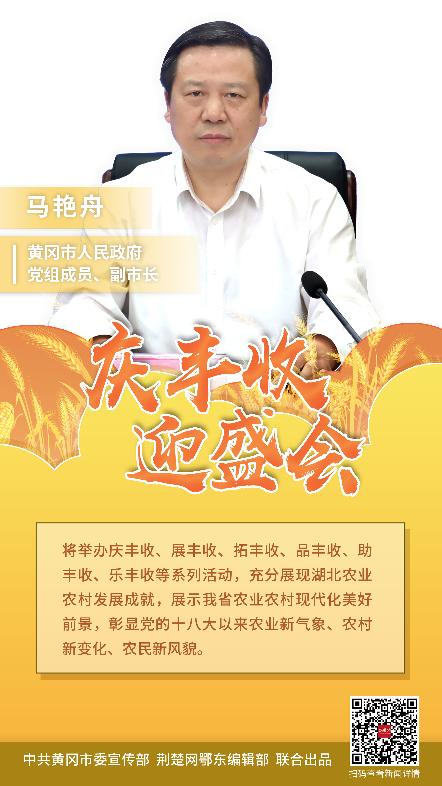 此次活動(dòng)由省農(nóng)業(yè)農(nóng)村廳和黃岡市人民政府共同主辦,以“慶豐收 迎盛會(huì)”為主題,定于9月23日在麻城市舉辦開幕式。