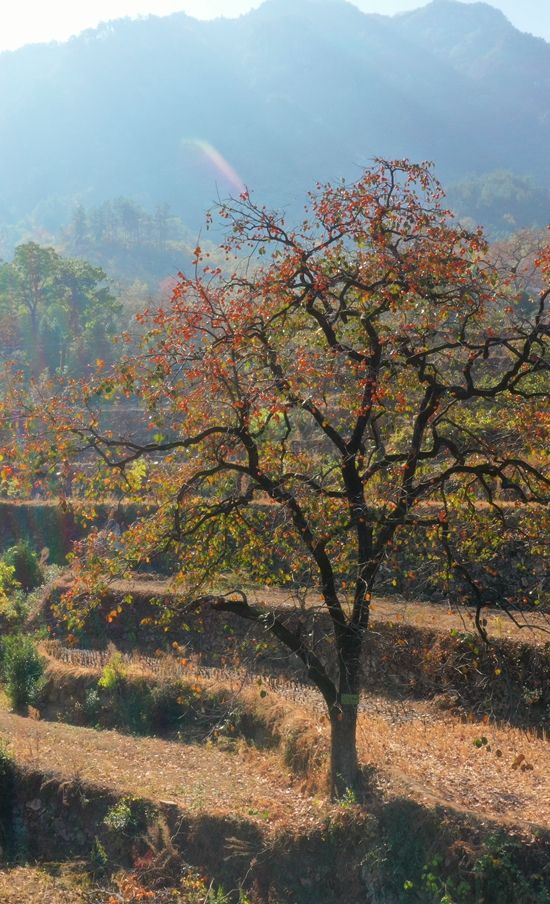 初冬時(shí)節(jié),在“中國(guó)甜柿之鄉(xiāng)”湖北羅田縣三里畈鎮(zhèn)鏨字石村,田間地頭,百年老柿樹(shù)上,掛滿了“紅燈籠”。