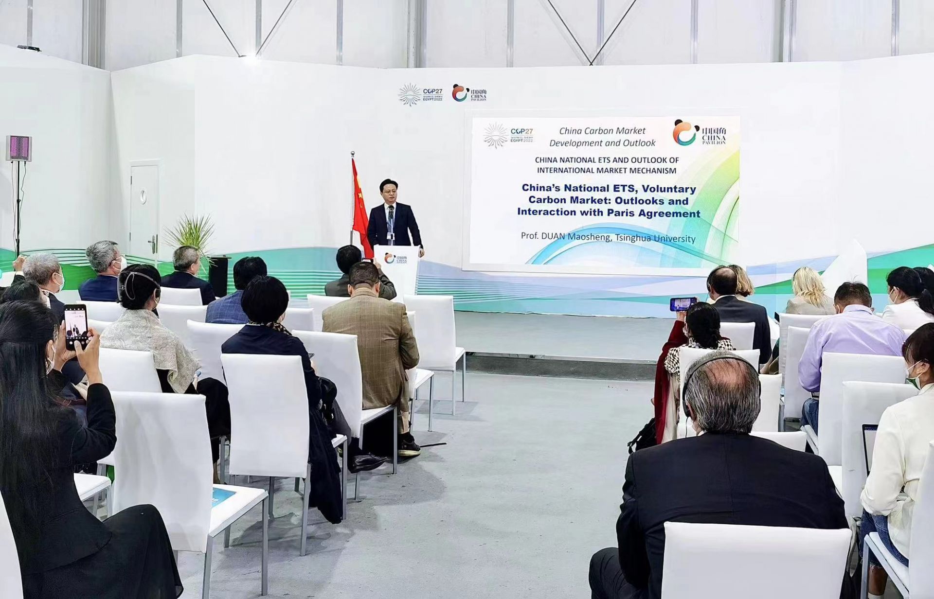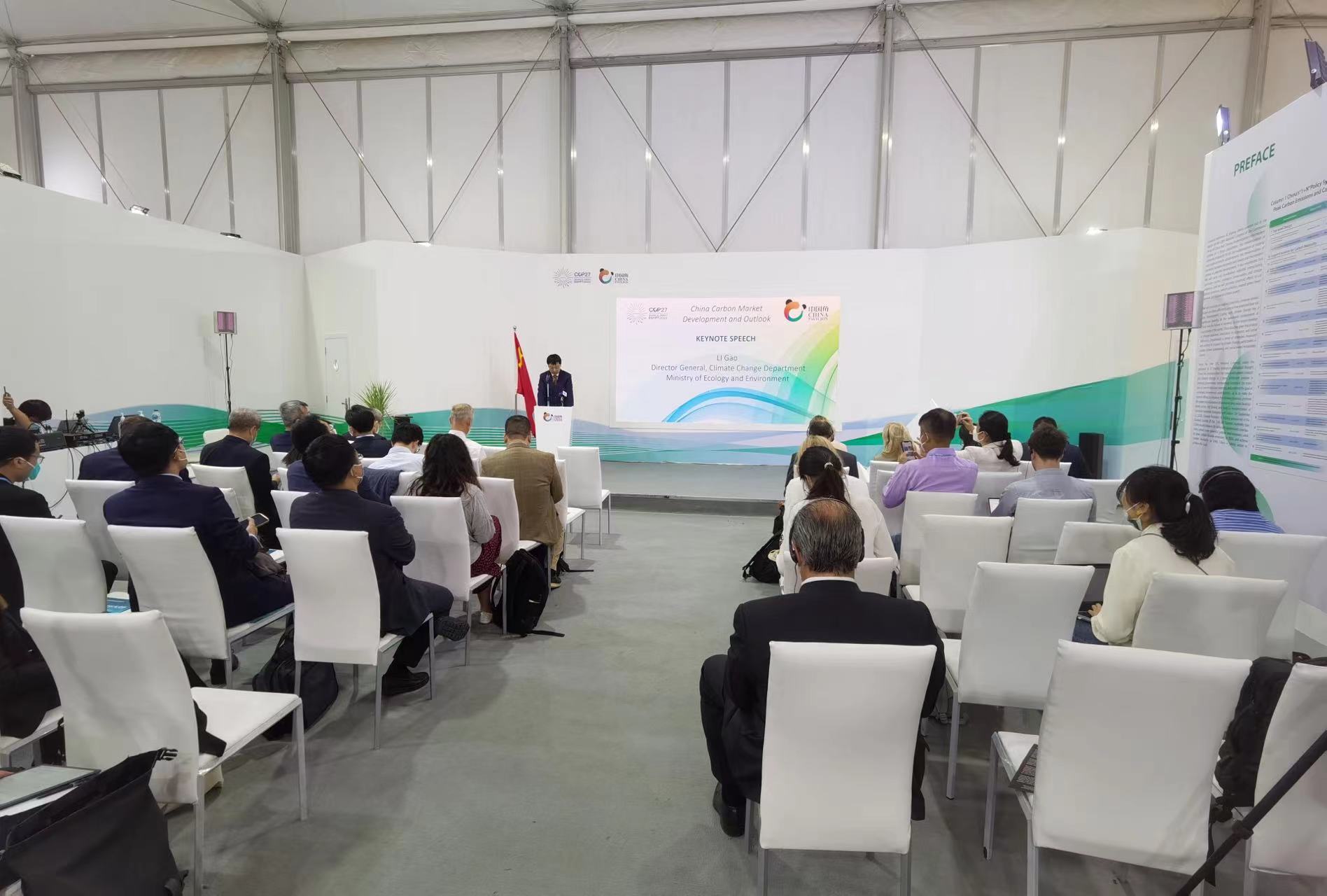 當(dāng)?shù)貢r間11月15日,由生態(tài)環(huán)境部氣候司主辦,國家應(yīng)對氣候變化戰(zhàn)略研究和國際合作中心和美國環(huán)保協(xié)會聯(lián)合承辦的“中國碳市場發(fā)展與展望邊會”在埃及《聯(lián)合國氣候變化框架公約》第二十七次締約方大會(COP27)中國角舉行。中碳登黨委書記、董事長陳志祥受邀擔(dān)任邊會主旨演講主持人,并與國際應(yīng)對氣候變化、綠色能源、環(huán)境保護等領(lǐng)域機構(gòu)代表和專家進行圓桌討論。