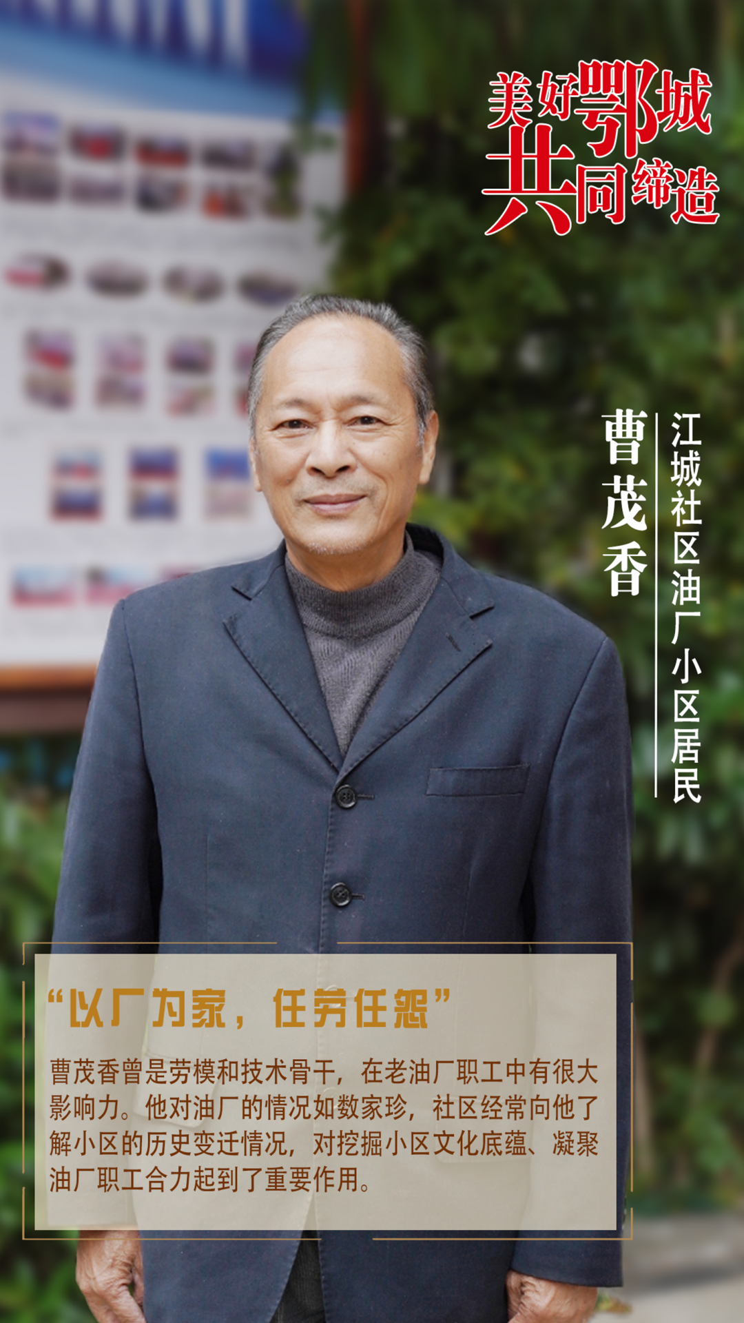 曹茂香曾是勞模和技術(shù)骨干,在老油廠職工中有很大影響力。他對油廠的情況如數(shù)家珍,社區(qū)經(jīng)常向他了解小區(qū)的歷史變遷情況,對挖掘小區(qū)文化底蘊(yùn)、凝聚油廠職工合力起到了重要作用。
