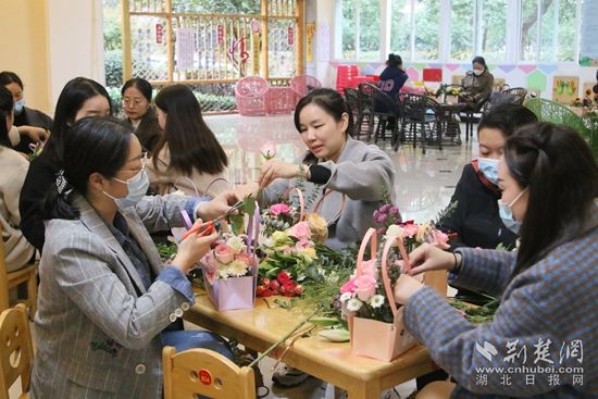 在插花培訓環(huán)節(jié),具有豐富插花經(jīng)驗的老師為參與者詳細講授選花、裁剪、顏色搭配、造型等方面的技巧。女職工們在老師手把手地指導下,學習插花技藝、陶冶情操,徜徉在“花?!敝校浞职l(fā)揮自身想象力與創(chuàng)作力,感受插花藝術(shù)的獨特魅力。