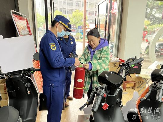 “你這個店那么大,需要配備兩具滅火器。”“滅火器會不會使用?”每到一處,消防人員都提醒店面負責人要配備足量滅火器,并向員工演示講解滅火器的正確使用方法。