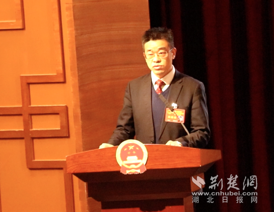 咸安區(qū)委副書記、區(qū)長李軍平作政府工作報告。黃錚攝