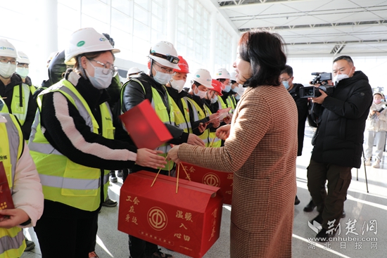 今年送你們回家過春節(jié),明年將再一次迎接你們回來,繼續(xù)建設、發(fā)展、運營花湖機場,花湖機場因你們而驕傲,將來你們也一定會因花湖機場而驕傲?!痹诂F(xiàn)場,鄂州市委常委、統(tǒng)戰(zhàn)部部長、市總工會主席夏帆對機場建設者代表說。