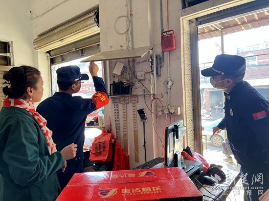 期間,宣傳人員走進轄區(qū)沿街門店、商場市場等人員密集場所,重點對各煙花爆竹銷售場所的產(chǎn)品儲量、是否違規(guī)銷售孔明燈及消防器材配置等情況進行了檢查。