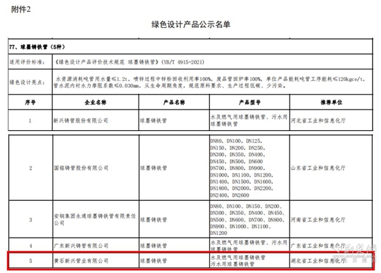荊楚網(wǎng)(湖北日報(bào)網(wǎng))訊(通訊員 柯雪梅 尹建)2月9日,工信部發(fā)布《2022年度綠色制造名單公示》,經(jīng)黃石市和湖北省工信廳評審?fù)扑]及國家工信部專家評審,黃石新興管業(yè)有限公司球墨鑄鐵管產(chǎn)品榮獲綠色設(shè)計(jì)產(chǎn)品認(rèn)定,意味著公司在綠色制造領(lǐng)域中取得了新突破。