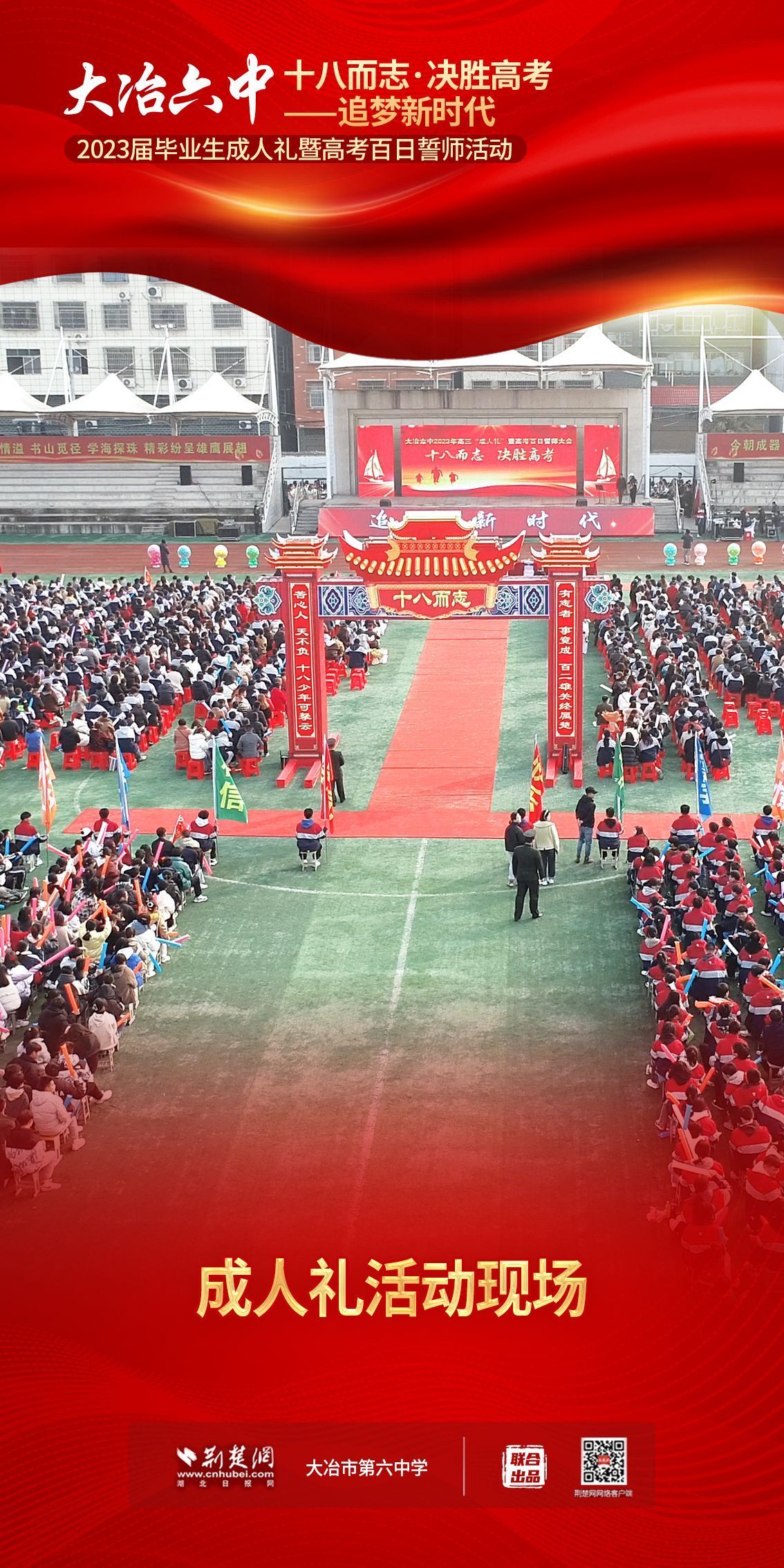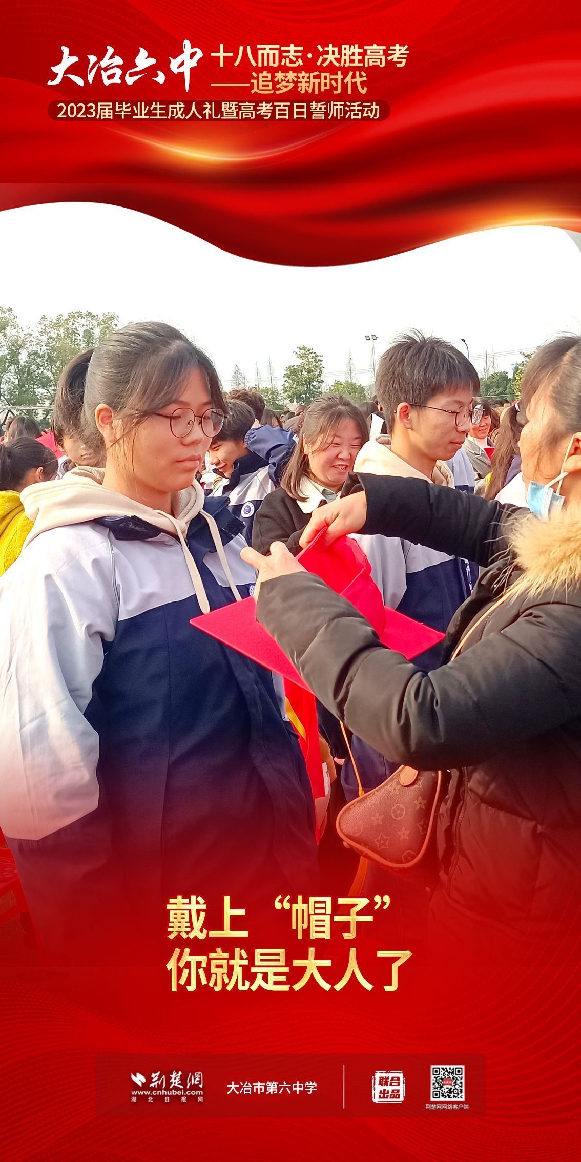 荊楚網(wǎng)(湖北日?qǐng)?bào)網(wǎng))訊(記者 左乙辰 通訊員 吳江濤、任慧)撥穗正冠,禮成!2月25日,大冶市第六中學(xué)3600名學(xué)子和家長(zhǎng)、老師共同見證該校1200名高三同學(xué)十八歲成人儀式,共赴六月的理想征程。