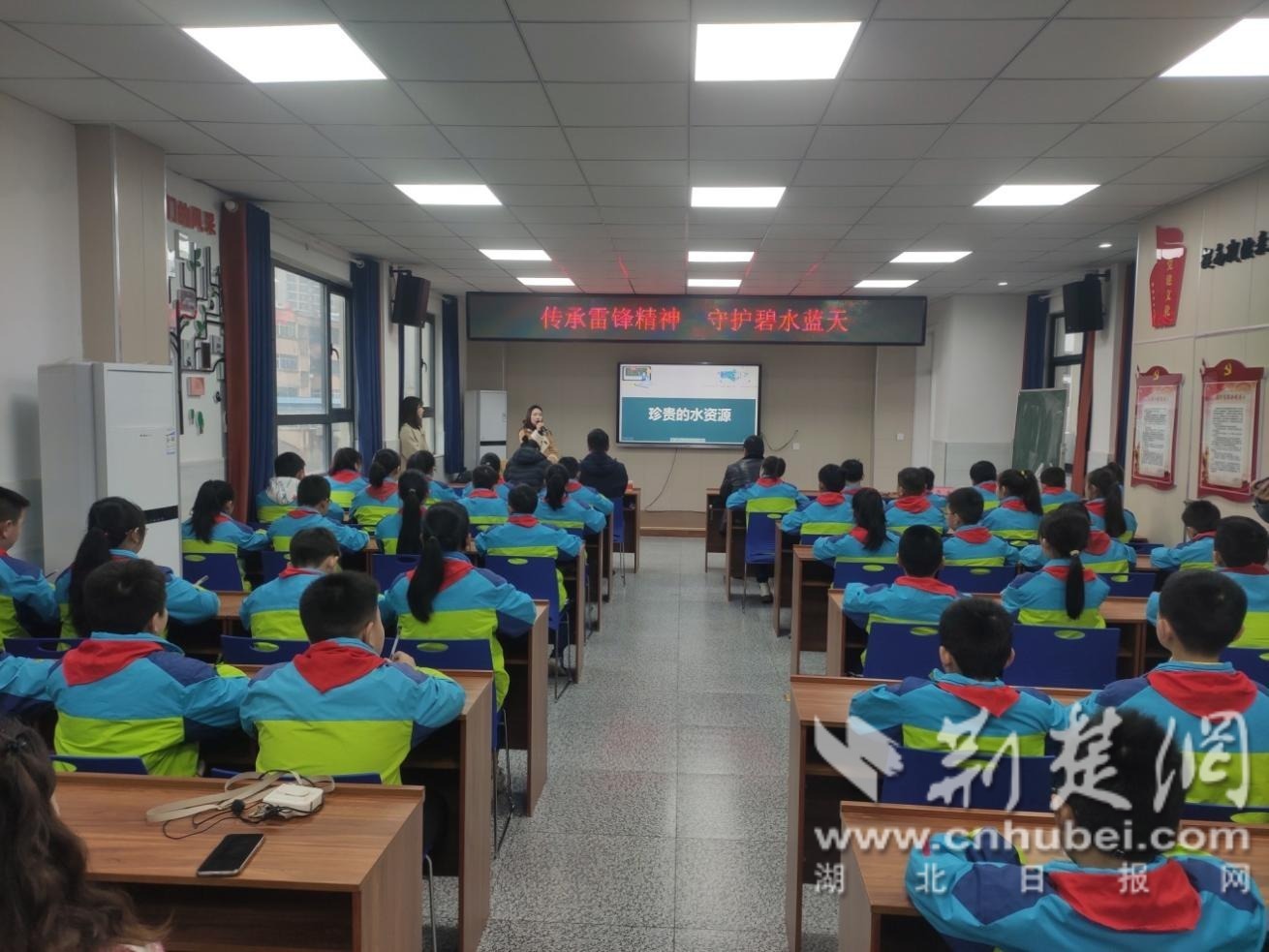 3月21日,水文專家走進校園,講解水文、水資源有關(guān)知識。讓學(xué)生們了解我國水資源基本狀況,對愛水保水、節(jié)約用水的理念和措施有了深入認(rèn)識。學(xué)生們還將節(jié)水護水知識編成三句半進行了表演,紛紛表示今后要認(rèn)真踐行節(jié)水生活,并帶動家人共同參與。