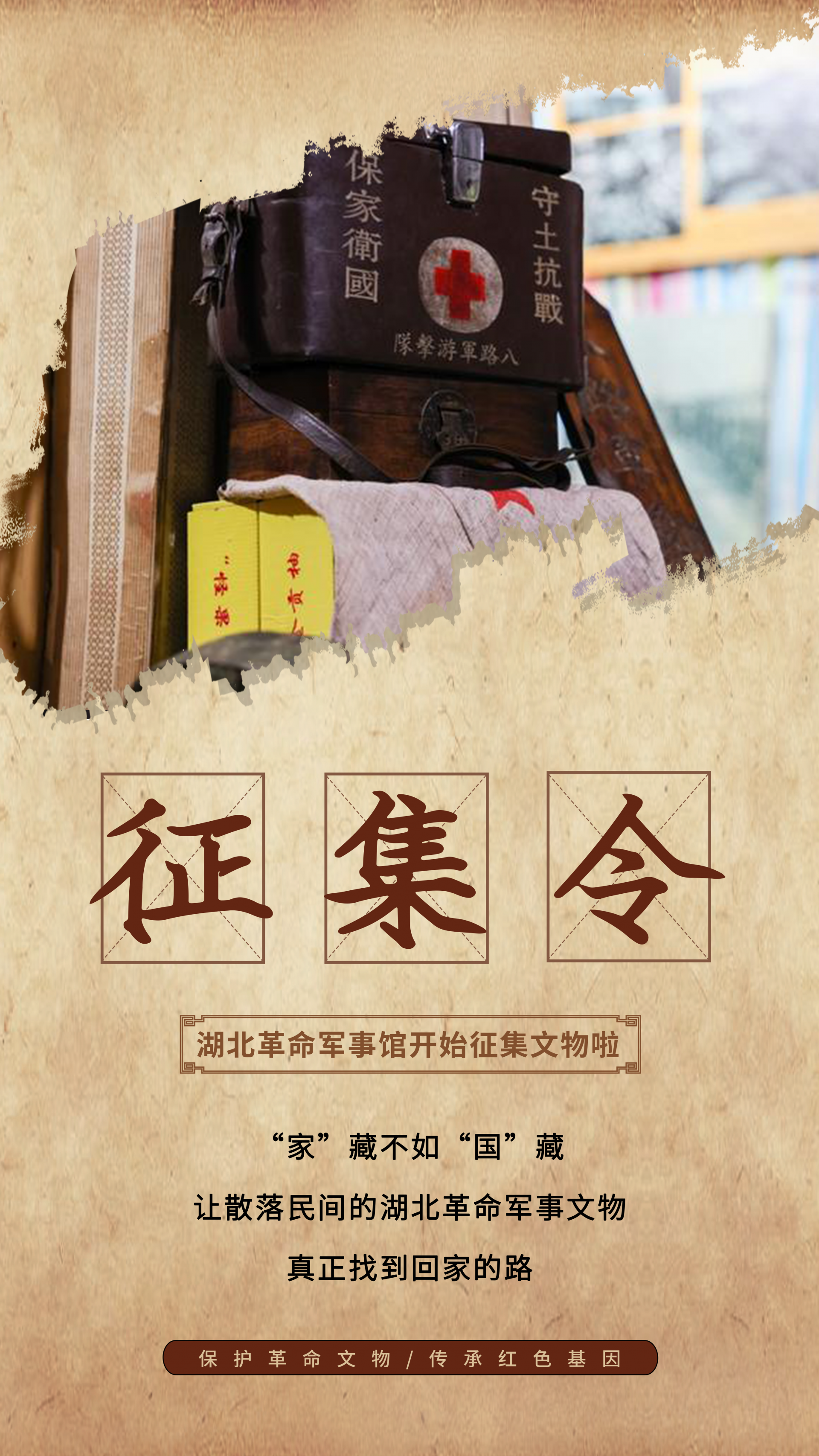 重點征集新民主主義革命時期中國共產(chǎn)黨在湖北領(lǐng)導(dǎo)革命斗爭、新中國成立后駐鄂部隊履行使命任務(wù)相關(guān)的文物(實物)史料及線索。