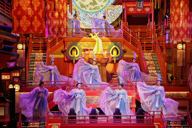 “長安十二時辰”主題街區(qū)內(nèi)的霓裳羽衣舞表演。