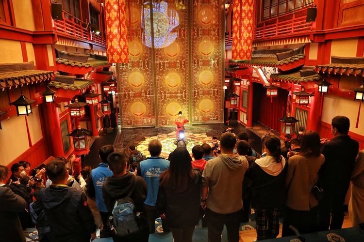 二層則是“花萼相輝·夜宴長安”主題文化宴席體驗空間,以“唐食嗨吃、換裝推本、唐風雅集、微縮長安、情景演藝、文化盛宴”等六大沉浸場為核心,大家能在長安十二時辰充分享受到“觀一場唐風唐藝、聽一段唐音唐樂、演一出唐人唐劇、品一口唐食唐味、玩一回唐俗唐趣、購一次唐物唐禮”的一秒入唐體驗。