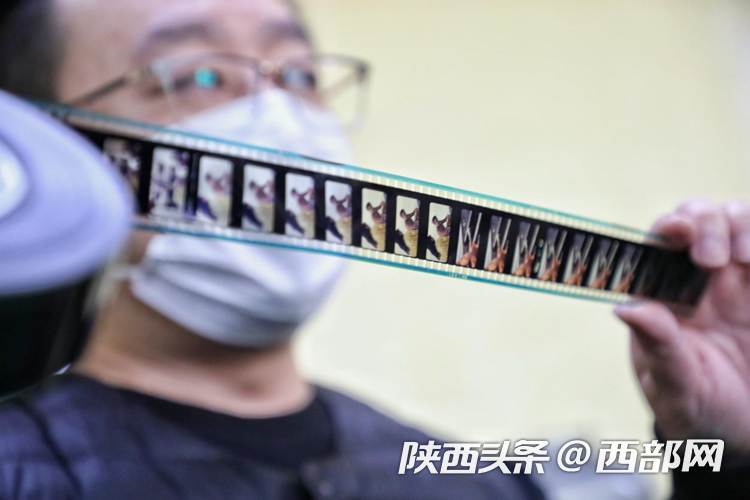 西影傳媒影像修復(fù)中心主任雷剛展示電影膠片