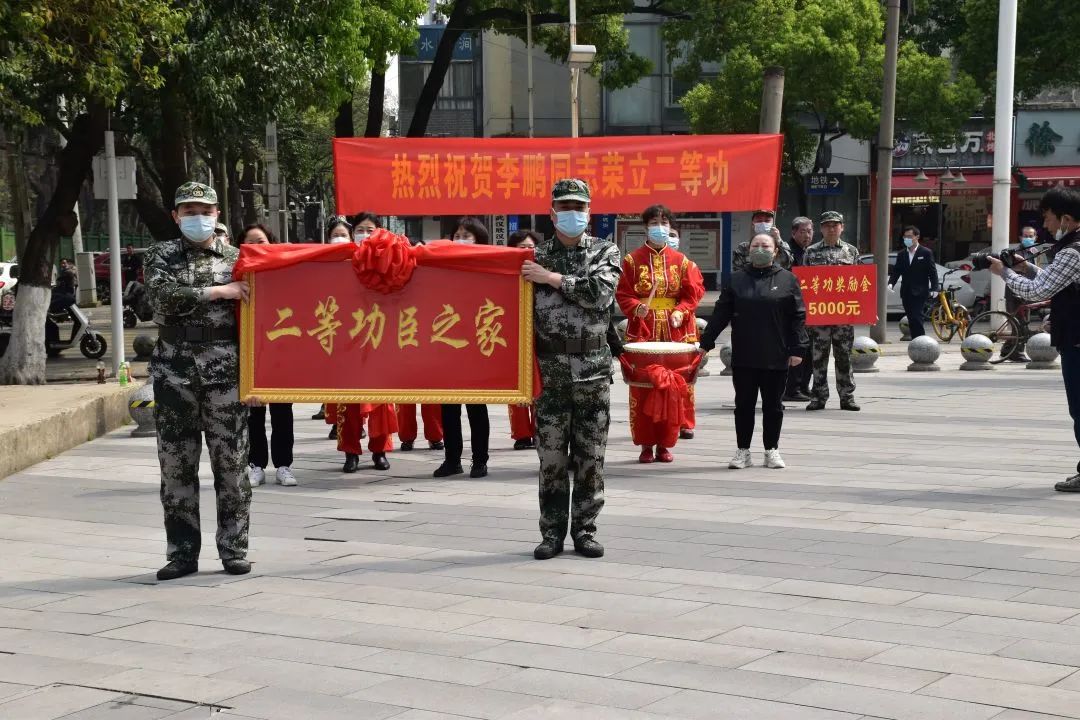 為營(yíng)造全社會(huì)尊崇軍人、關(guān)愛軍屬的良好風(fēng)尚,“送喜報(bào)小分隊(duì)”安排鑼鼓隊(duì)向李鵬一家居住的小區(qū)送來“二等功臣之家”的牌匾和獎(jiǎng)勵(lì)金。武漢市青山區(qū)區(qū)委常委、區(qū)人武部陳強(qiáng)部長(zhǎng)現(xiàn)場(chǎng)宣讀表彰通報(bào),向小區(qū)居民報(bào)喜。