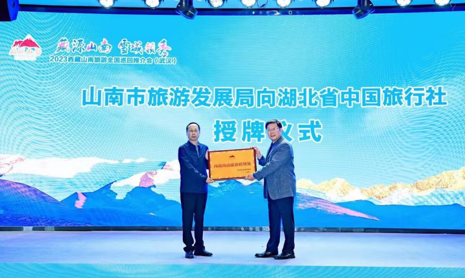 推介會上,山南市作重點旅游產業(yè)項目招商推介,乃東縣、曲松縣分別帶來旅游產品推介。山南市旅游發(fā)展局與湖北易游天下國際旅行社等10家單位達成送客入藏合作意向,并現場簽約。此外,為加強山南與湖北的旅游交流合作,邀請更多湖北游客走進山南,山南市旅游發(fā)展局授予湖北省中國旅行社“西藏自治區(qū)山南旅游聯絡處”。