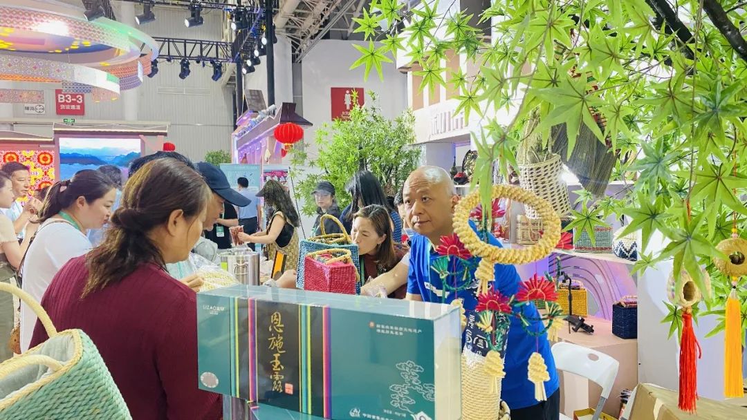 恩施市積極籌備,組織了市域旅游景區(qū)、旅行社、星級飯店、涉硒企業(yè)、旅游商品文創(chuàng)產品生產銷售企業(yè)近20家企業(yè)70余人組團參加本次展會。參展內容涵蓋恩施文創(chuàng)產品、恩施玉露、富硒產品、土特產、旅游商品、非遺項目草編等各大門類,分別通過展示區(qū)、售賣區(qū)、表演區(qū)等區(qū)域進行宣傳展示,受到參展商和參展市民的高度青睞。