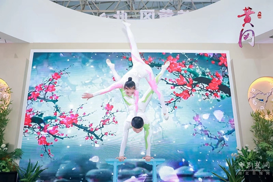 荊楚網(wǎng)(湖北日報網(wǎng))訊(通訊員 浠小文)4月22日,第二屆中國(武漢)文化旅游博覽會在湖北省武漢市開幕,浠水雜技節(jié)目《花仙蝶舞——轉(zhuǎn)碟》精彩亮相。