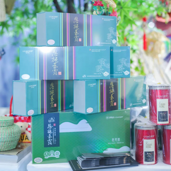 品一杯玉露茶、看一場文藝演出、賞山水美景、嘗特色美食、體驗“草編技藝”。“恩施玉露”作為武漢東湖國事活動茶敘用茶之一,現(xiàn)場設(shè)置茶藝展示,恩施玉露茶免費品嘗;香腸、排骨等土家臘肉滿口飄香;現(xiàn)場用玉米葉等編織的花瓶、包包、扇子、帽子等環(huán)保又美觀;西蘭卡普極具土家特色包包、“看家寶貝”硒片等特色產(chǎn)品吸引了眾多參展嘉賓駐足。