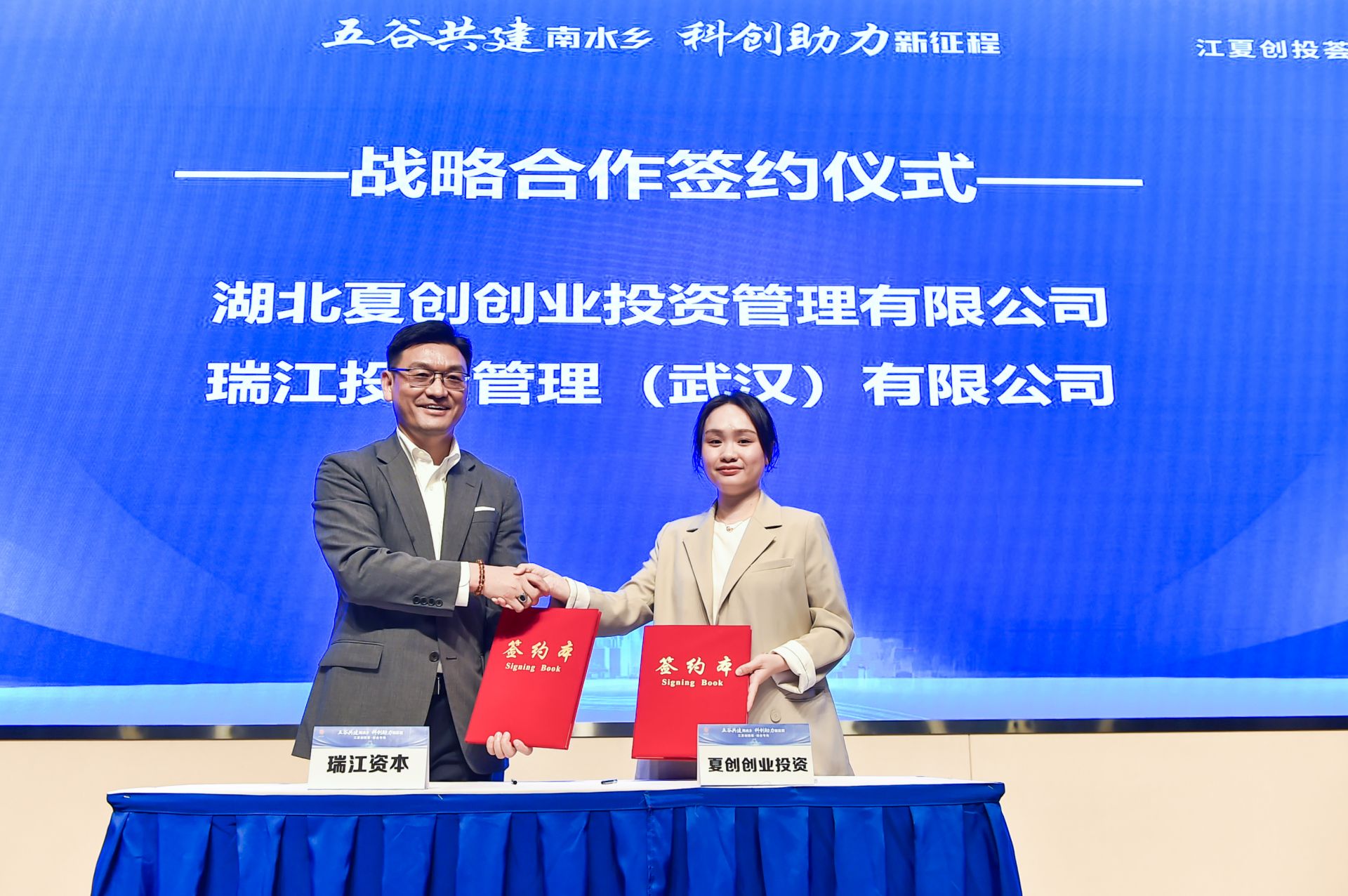 簽約儀式上,科投集團(tuán)子公司湖北夏創(chuàng)創(chuàng)業(yè)投資管理有限公司總經(jīng)理何茜與瑞江投資管理(武漢)有限公司董事長(zhǎng)、總經(jīng)理趙進(jìn)強(qiáng)簽訂《戰(zhàn)略合作框架協(xié)議》,雙方在基金合作及金融服務(wù)等方面開(kāi)展合作,逐步凝聚合作共識(shí)、拓寬合作領(lǐng)域、實(shí)現(xiàn)共贏發(fā)展。