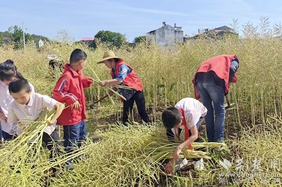 荊楚網(wǎng)(湖北日報(bào)網(wǎng))訊(通訊員劉志勇)“田間少閑月,五月人倍忙”。轉(zhuǎn)眼間,紅安縣永河小學(xué)勞動(dòng)實(shí)踐基地里的油菜進(jìn)入收獲期,5月12日,永河小學(xué)各班師生趁著晴好天氣搶收油菜,現(xiàn)場一派繁忙的豐收景象。