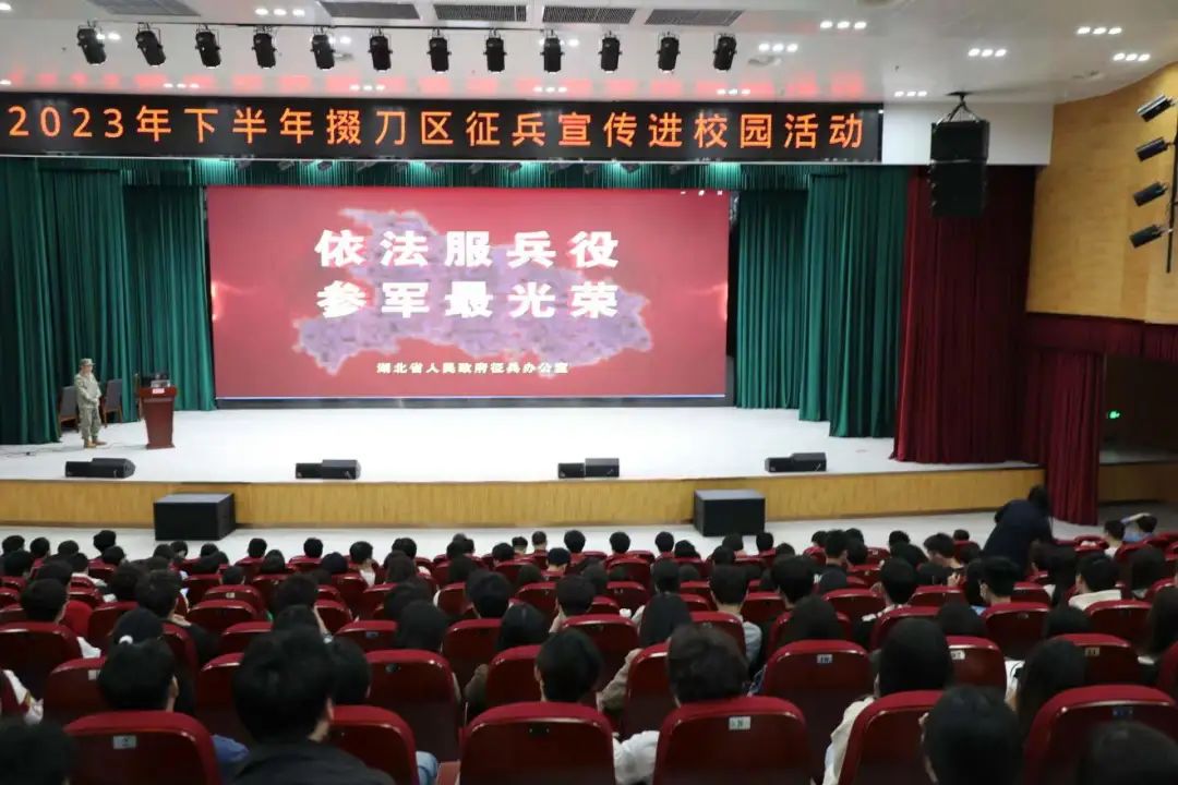 在荊門外語學(xué)校、湖北信息工程學(xué)校,征兵宣講員走進(jìn)各畢業(yè)班,結(jié)合課件、征兵宣傳手冊(cè),向15個(gè)班級(jí)學(xué)生講解了報(bào)名參軍的十大好處。
