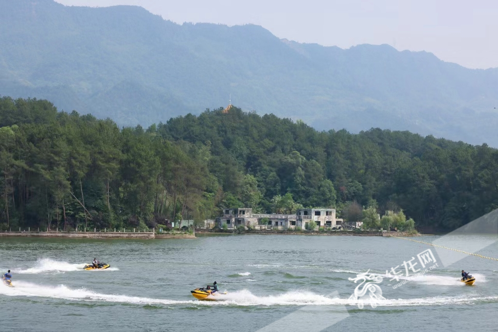 龍水湖邊正在進(jìn)行摩托艇表演。華龍網(wǎng)-新重慶客戶端 劉岱松 攝