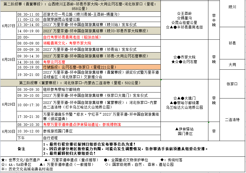 本次活動(dòng)我們將追隨歷史的腳步,以滾滾車輪重新丈量這條傳奇的萬(wàn)里茶道?!靶匏幖t茶2023環(huán)中國(guó)自駕游集結(jié)賽——萬(wàn)里茶道”將從安徽黃山出發(fā),一路向北,深入茶道沿線各地,直至中國(guó)的北大門二連浩特邊境口岸。沿途我們將一起走過(guò)黃山、廬山、柴埠溪大峽谷、王莽嶺等名山大川,尋訪西遞古鎮(zhèn)、龍門石窟、云岡石窟、江漢關(guān)等人文古跡,考察羊樓洞、紅茶廠、九江茶市、漫江寧紅茶茶園、木耳山等萬(wàn)里茶道遺產(chǎn)點(diǎn)和茶文化產(chǎn)業(yè)基地。一起品茶、露營(yíng)、泡溫泉、欣賞非遺展演,開展“文物打卡”、“古跡尋根”等研學(xué)活動(dòng)。而作為一場(chǎng)汽車賽事,還有共計(jì)5萬(wàn)余元的賽事獎(jiǎng)金和精美禮品等你來(lái)拿。