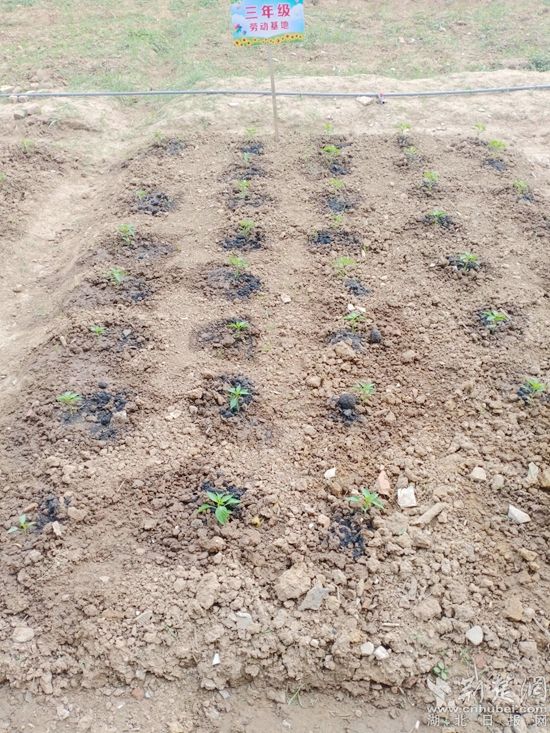 杜山小學結(jié)合學校的實際,充分利用校園閑置的荒地,全體師生共同開荒破土,建設(shè)了一塊學生勞動實踐教育基地。各年級各班實行劃塊種植, 經(jīng)過開荒破土、挖溝修渠、除草去石、曬種浸種、溫棚育種、澆水移栽等環(huán)節(jié),在老師的指導下,歷經(jīng)一個多月,各班栽種的蔬菜,郁郁蔥蔥,茁壯成長。