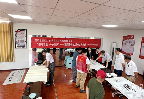 荊楚網(wǎng)(湖北日報網(wǎng))訊(通訊員丁元中)6月9日上午,鄂城區(qū)碧石渡鎮(zhèn)開展“墨書華章 丹心向黨——喜迎建黨102周年”書畫活動。