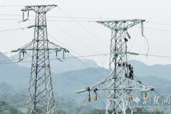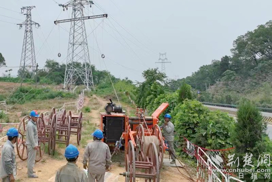 荊楚網(wǎng)(湖北日報網(wǎng))訊(通訊員 周燁任 曹浩)6月12日,在黃石陽新縣富陽公路和黃陽公路沿途110千伏宋竹線輸電線路改造現(xiàn)場,電力工人站在高高的鐵塔上,頭頂驕陽展放導線,全力迎戰(zhàn)夏季用電高峰。