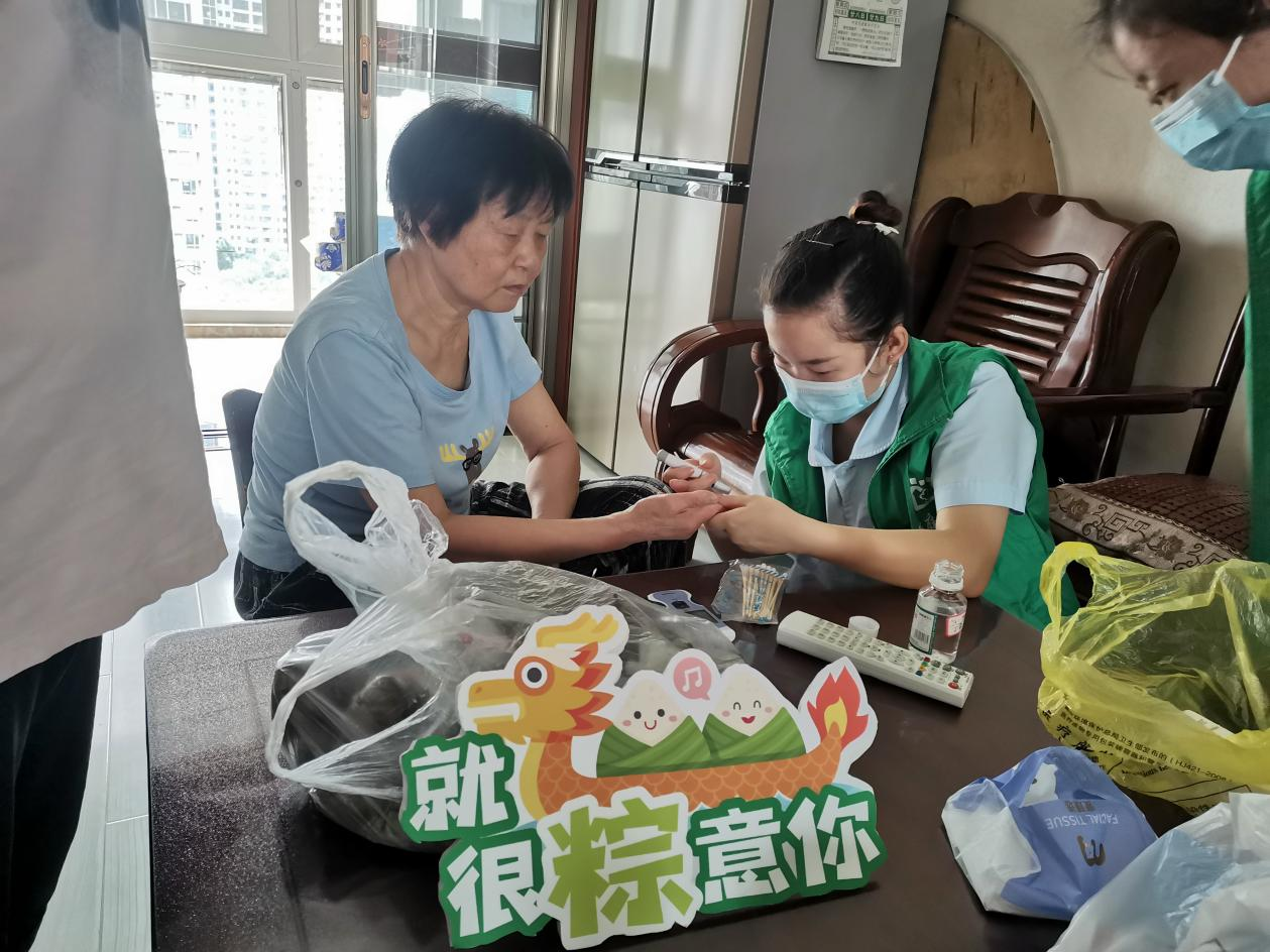 活動(dòng)結(jié)束后,社區(qū)工作人員及志愿者一起將“廉粽”送給了空巢老人、殘疾困難群眾,并由梨園街康益壽助老服務(wù)中心的家庭醫(yī)生團(tuán)隊(duì)上門為老人進(jìn)行血壓、血糖檢測,讓他們一同感受社區(qū)這個(gè)大家庭的溫暖。