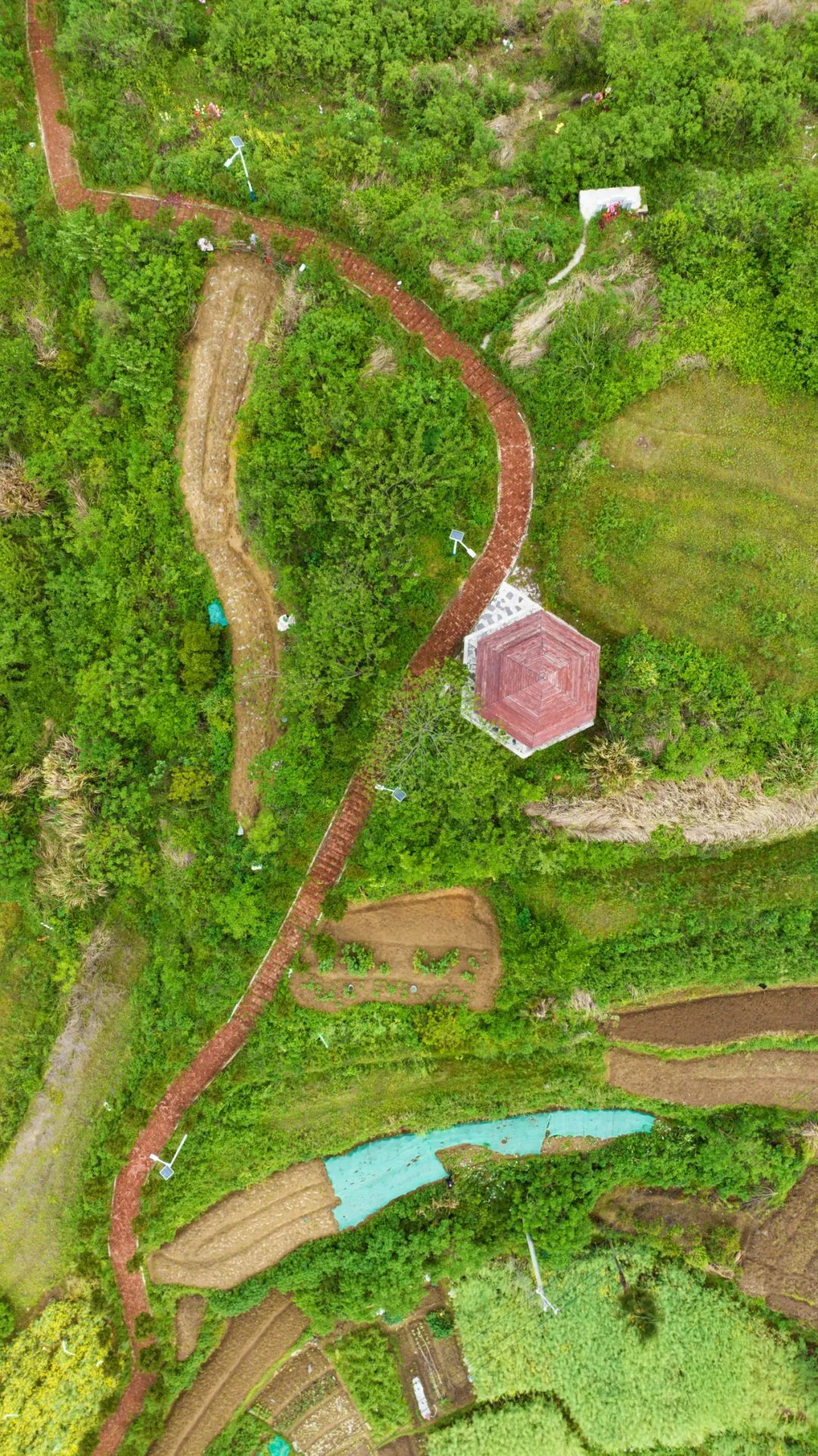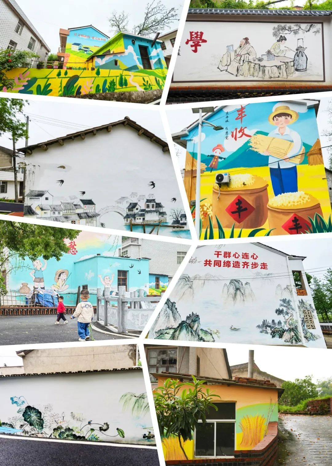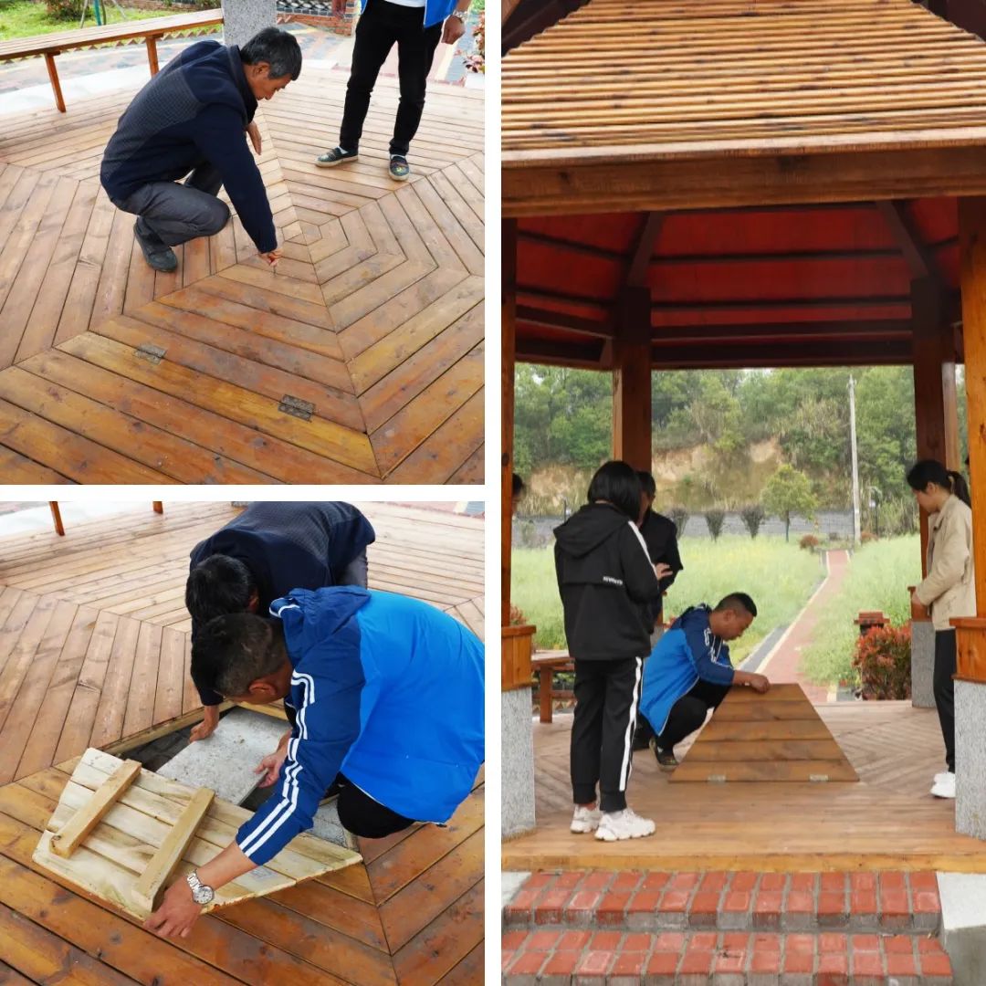 將農(nóng)具鑲嵌在墻上村民休憩的長(zhǎng)廊與涼亭