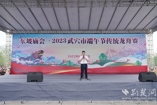 武穴市委常委、宣傳部長葉國慶致辭,希望通過舉辦龍舟賽,進(jìn)一步弘揚(yáng)和傳承中華民族優(yōu)秀傳統(tǒng)文化,豐富群眾的文體生活,展示“千年廣濟(jì),多彩港城”文旅品牌。