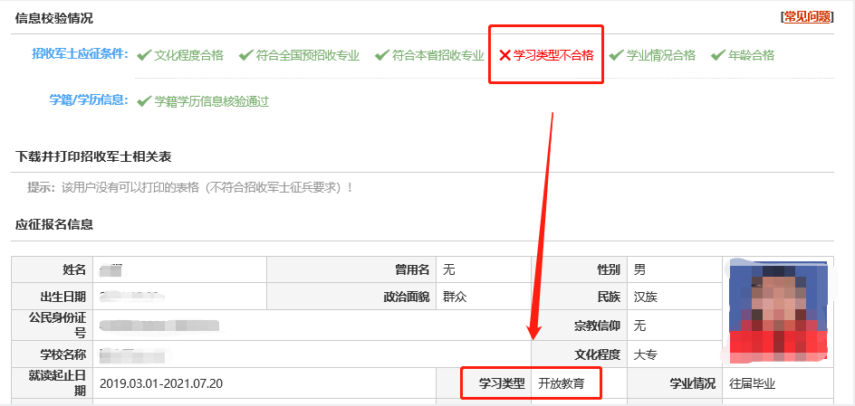 比如有的青年學(xué)歷為開(kāi)放教育,故未通過(guò):