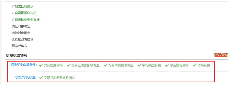 顯示報(bào)名成功的青年請(qǐng)耐心等待,保持電話暢通,在直招軍士網(wǎng)上報(bào)名結(jié)束之后,應(yīng)征地市級(jí)兵役機(jī)關(guān)還要進(jìn)行資格審查,擇優(yōu)確定體檢政考對(duì)象。