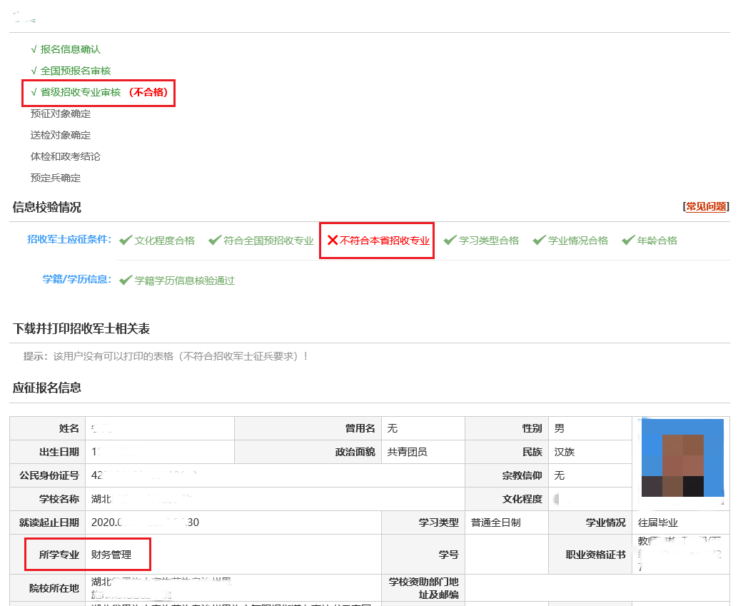 不符合招收專業(yè)這種情況分為兩類,第一類是極少數(shù)青年預(yù)報(bào)名時(shí)就已經(jīng)不符合全國(guó)招收專業(yè):