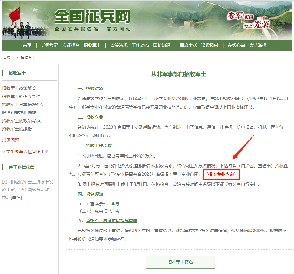 招收專業(yè)在直招軍士預(yù)報(bào)名時(shí)可以在全國(guó)征兵網(wǎng)進(jìn)行查詢。