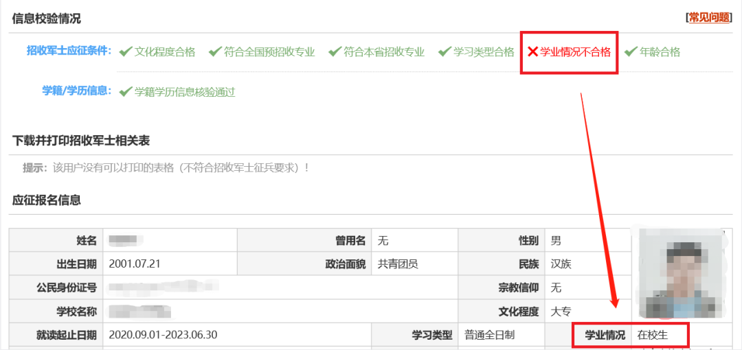 有的青年學(xué)業(yè)情況為在校生,直招軍士報(bào)名不會(huì)通過(guò):