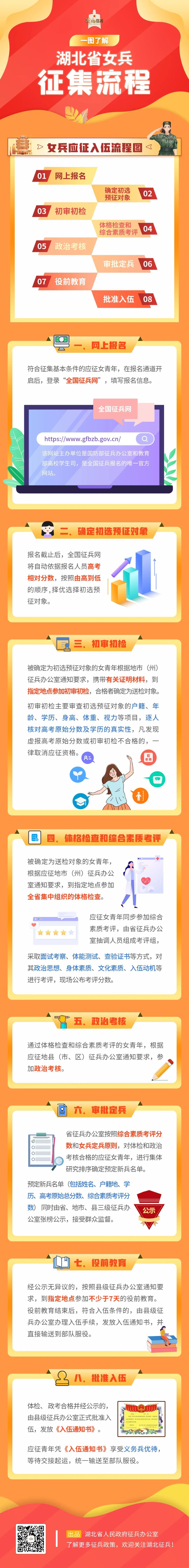 火熱軍營!期待你們的加入!快來一起了解湖北省女兵應征入伍流程圖,提前做好準備哦~